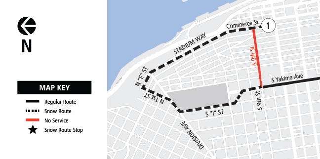 Every attempt will be made to continue wheelchair-accessible service. However, occasionally sand and salt (Downtown and East Tacoma) interfere with the lift mechanism. Call 253.581.8000 before heading to your bus stop. Snowy weather may cause delays and temporary detours, but our transit operators and support staff work to give you the best service possible.